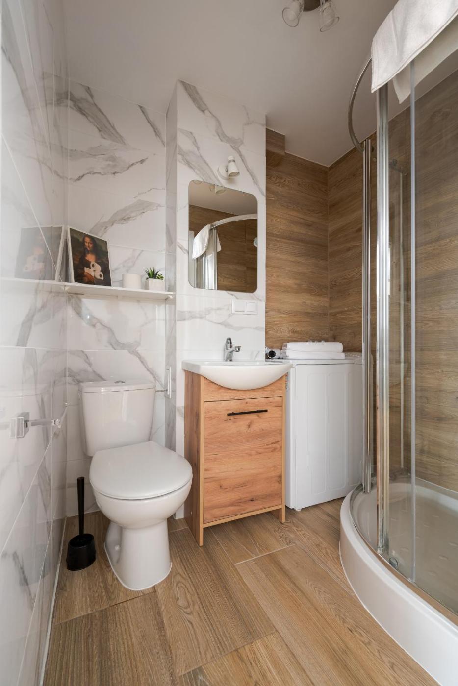 Studio. Offering free toiletries, this studio includes a private bathroom with a shower and a hairdryer. In the well-equipped kitchenette, guests will find a stovetop, a refrigerator, a dishwasher and kitchenware. This studio is air-conditioned and has a seating area with a flat-screen TV, a washing machine, a private entrance, a tea and coffee maker, as well as a dining area. The unit has 2 beds. Studio - 4 osobowy. Powierzchnia pokoju ok.: 27 mkw.