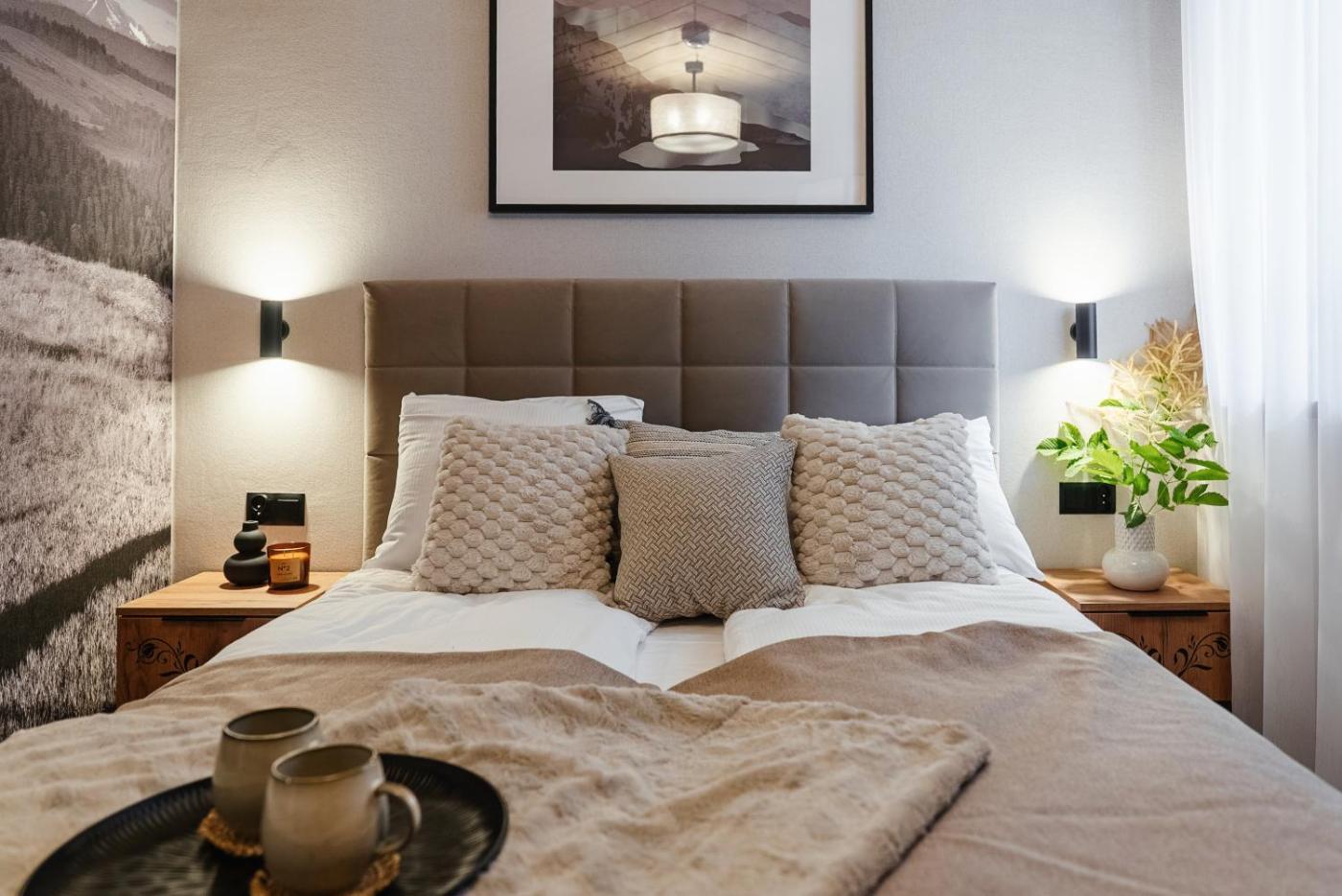 Apartament z 2 sypialniami. This apartment comprises 1 living room, 2 separate bedrooms and 2 bathrooms with a shower. Guests can make meals in the kitchen that comes with a stovetop, a refrigerator, a dishwasher and kitchenware. The apartment provides a seating area, an electric kettle, as well as a terrace and a balcony. The unit offers 3 beds. Apartament - 6 osobowy. ;